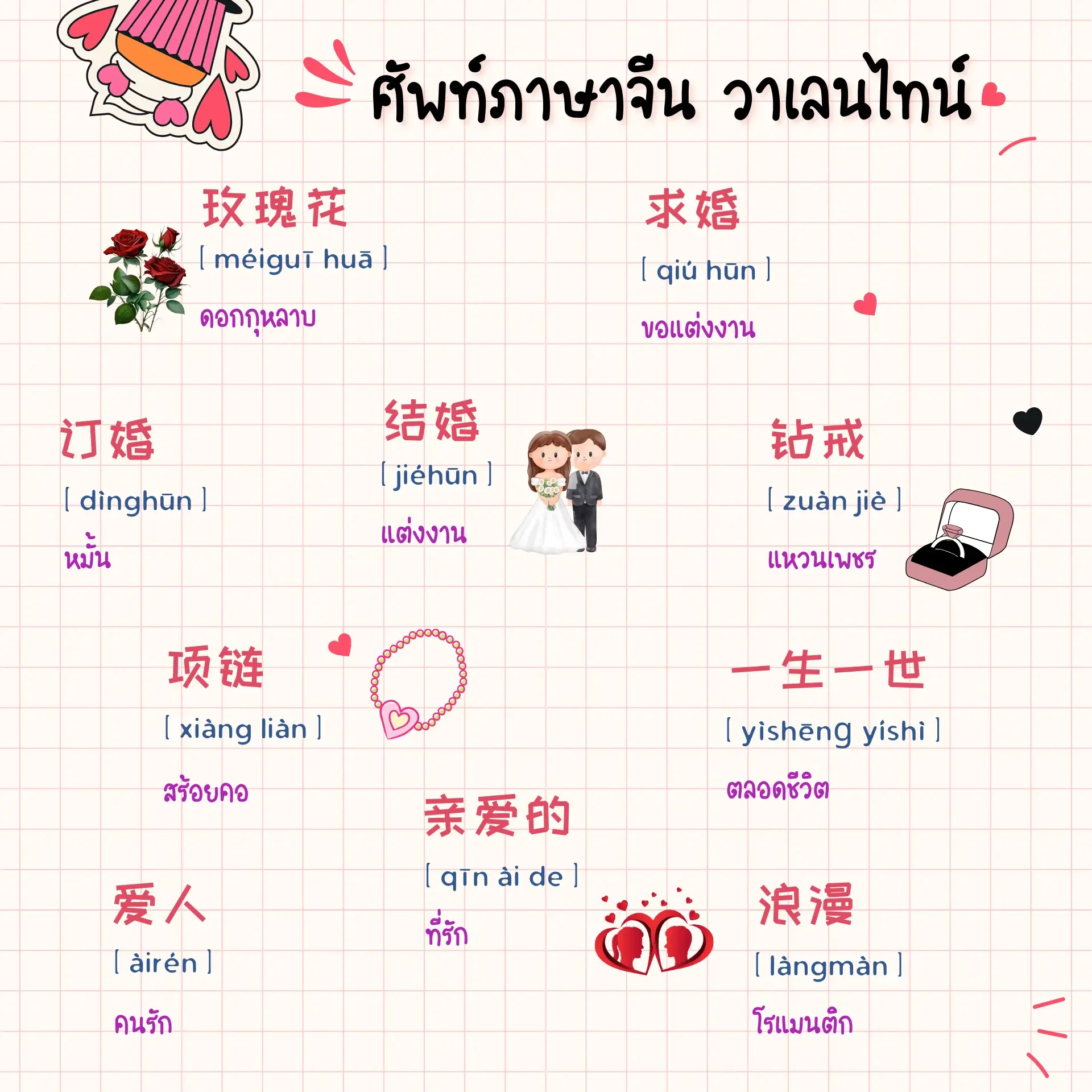 30 คำศัพท์ภาษาจีน วันวาเลนไทน์