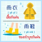 รวมคำศัพท์ภาษาจีนในฤดูฝน ช่วงหน้าฝนแบบนี้เลยอยากจะชวนทุกคนมารู้จักคำศัพท์ภาษาจีนของที่เกี่ยวกับฤดูฝนกันค่ะ มีคำไหนบ้างมาดูกันเลย