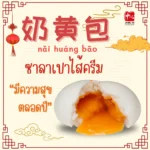 - ซาลาเปาไส้ครีม 奶黄包 nǎi huáng bāo หมายถึง”มีความสุขตลอดปี”