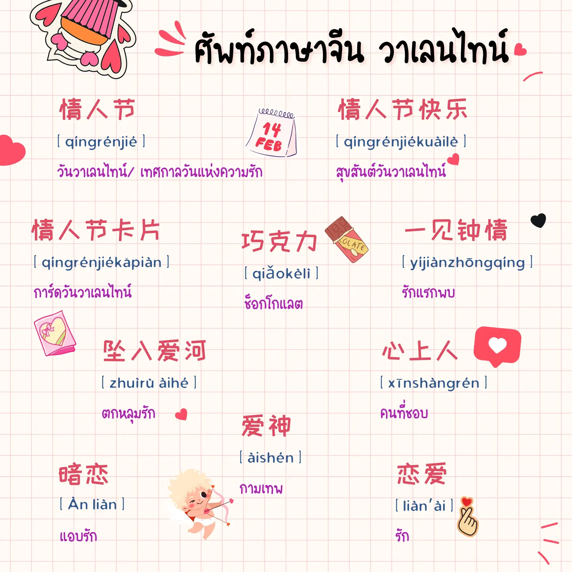 30 คำศัพท์ภาษาจีน วันวาเลนไทน์